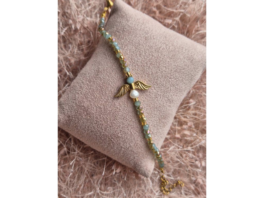 - Něžný náramek s andělským motivem, který v sobě nese klid, ochranu a ruční práci.